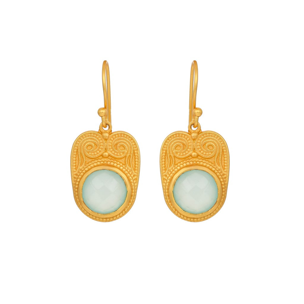Goddess Earrings with Aqua Green Chalcedony stones. Also available in Rainbow Moonstone, Carnelian, Amethyst and Labradorite.