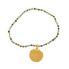 Designed with a vintage disc amulet and faceted turquoise stones, our amulet bracelet is threaded on jewellery elastic and can be worn alone or stacked with one of our other bracelet designs.